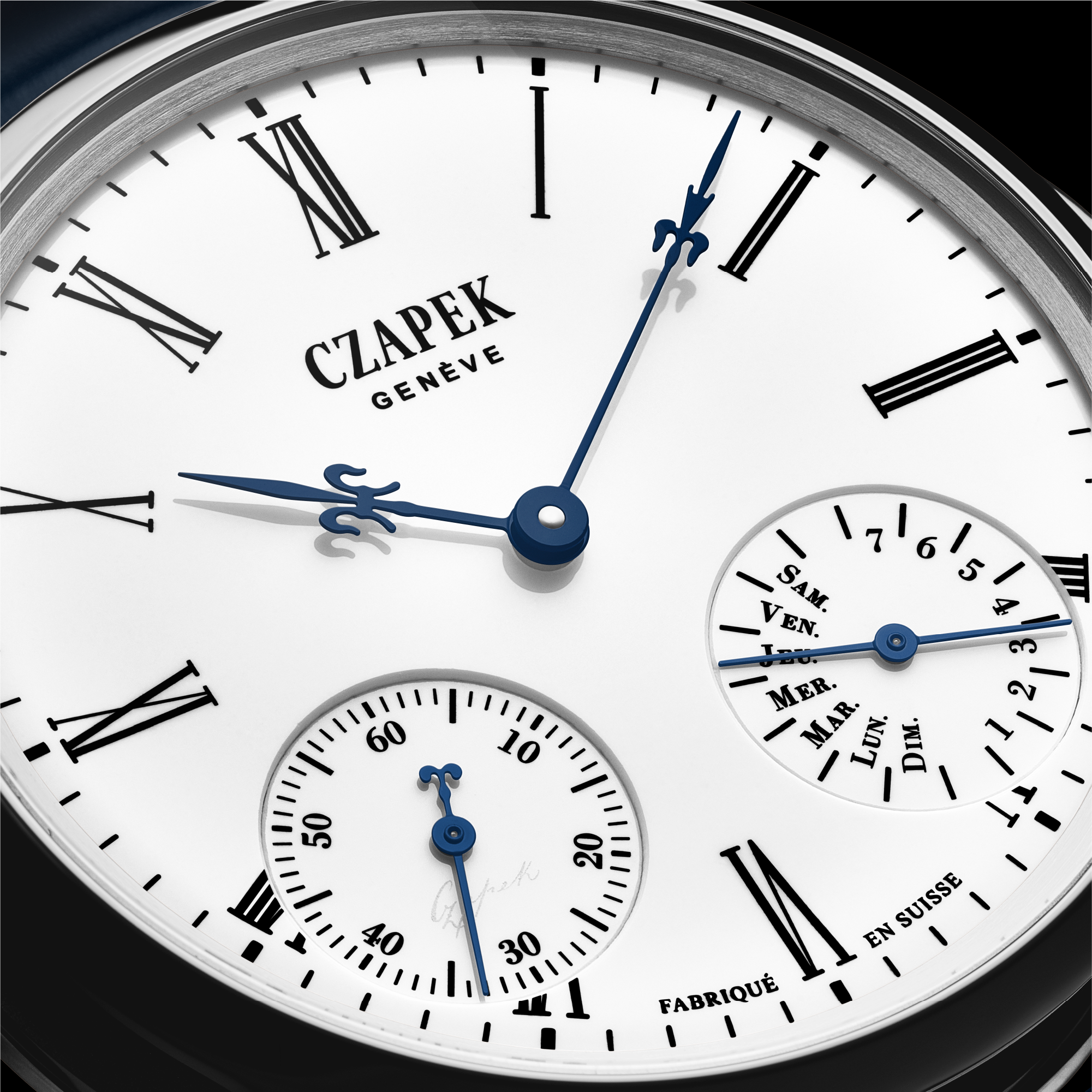 The Quai des Bergues N°25 brings Czapek’s most classical line into a modern stainless-steel execution. The pure white grand feu enamel dial, dual sub-dial display, and refined case architecture echo the earliest Czapek wristwatches while offering the updated 2025 aesthetic: sand-blasted case flanks, improved finishing, and customizable features such as hands and optional hidden inscription. Inside, the 7-day hand-wound calibre delivers both practicality and heritage, pairing twin barrels with pocket-watch-inspired architecture. At 40.5 mm, the N°25 offers a clean, contemporary take on Czapek’s original design language—old-world craft, modern proportions, and restrained elegance.