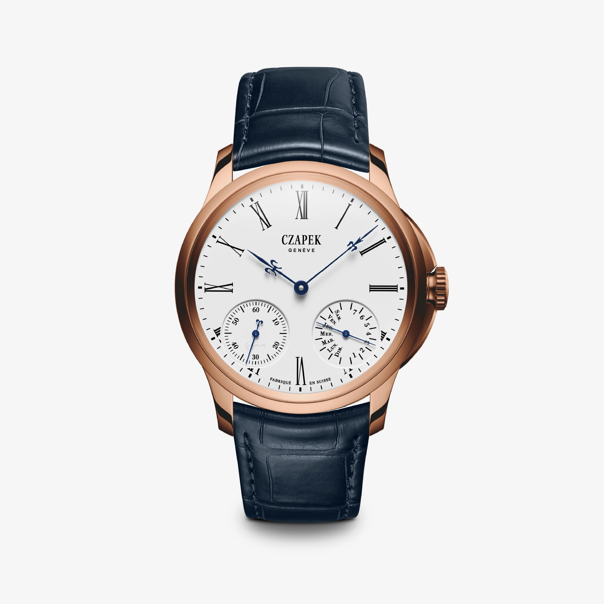 Rose-gold continuation of the Quai des Bergues with 7-day calibre and customizable enamel dial.