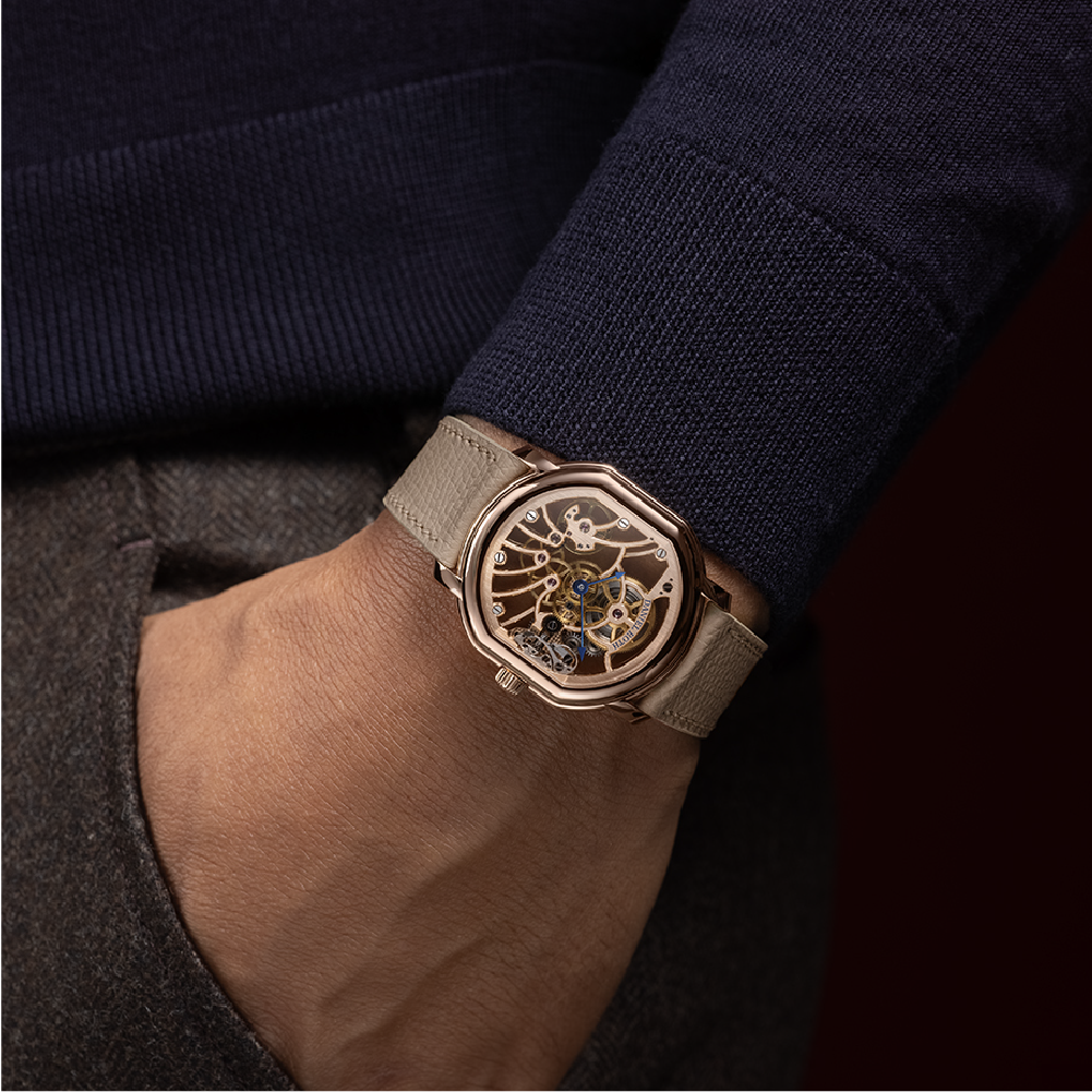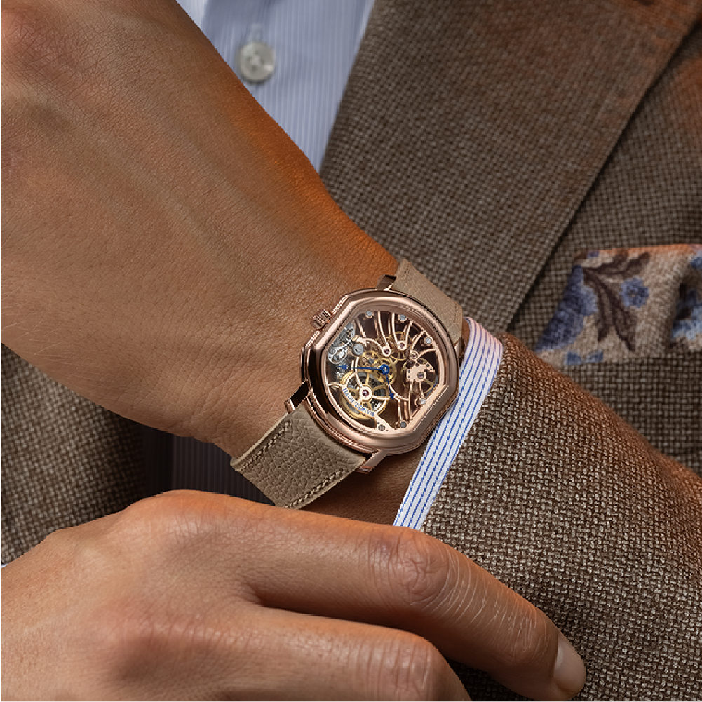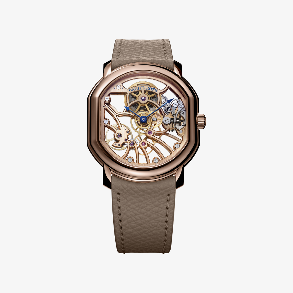 The Extra Plat Rose Gold Skeleton marks a defining moment in the revival of Daniel Roth. For the first time, one of the Maison’s most emblematic creations is rendered in an openworked form — not as a reinterpretation of the past, but as a considered evolution.