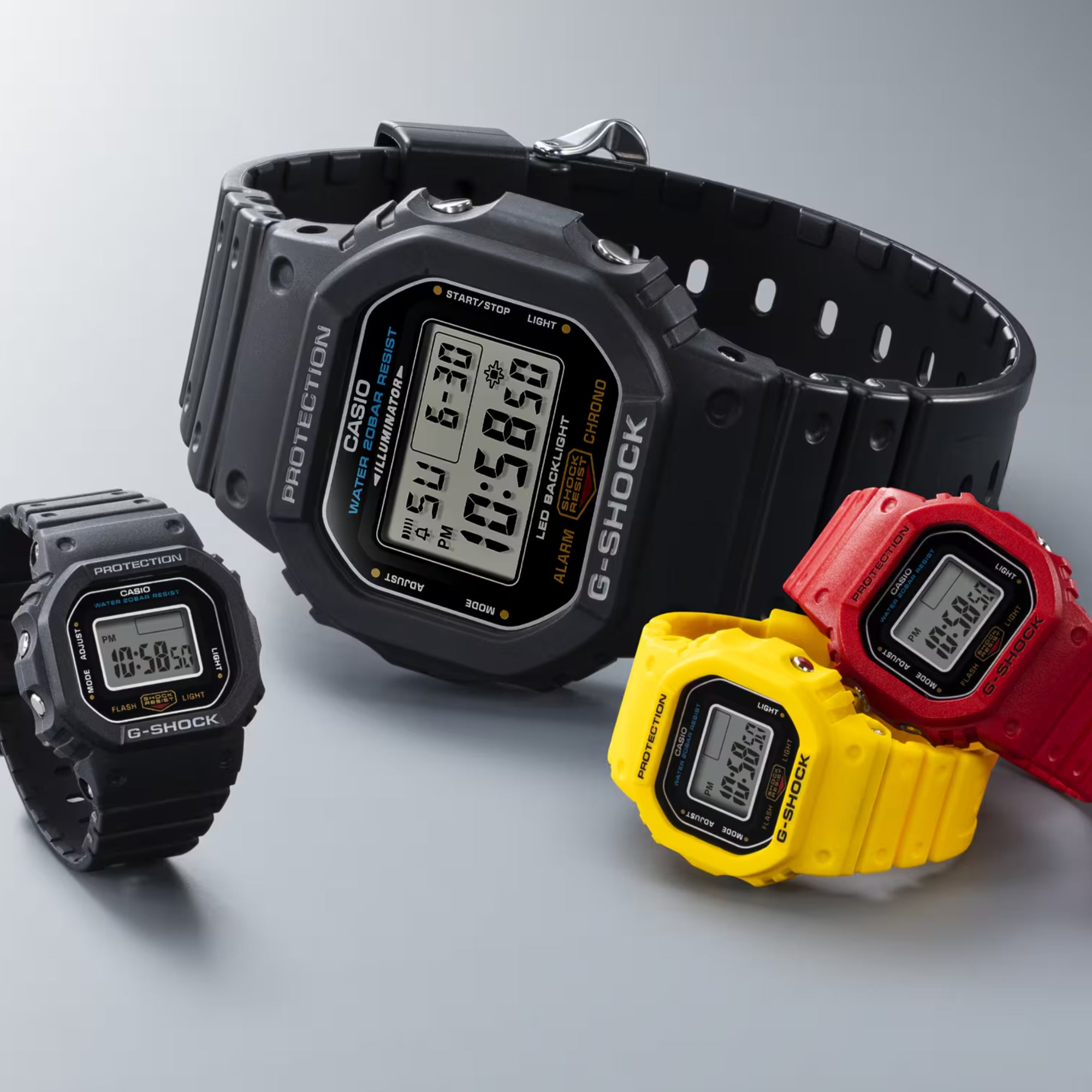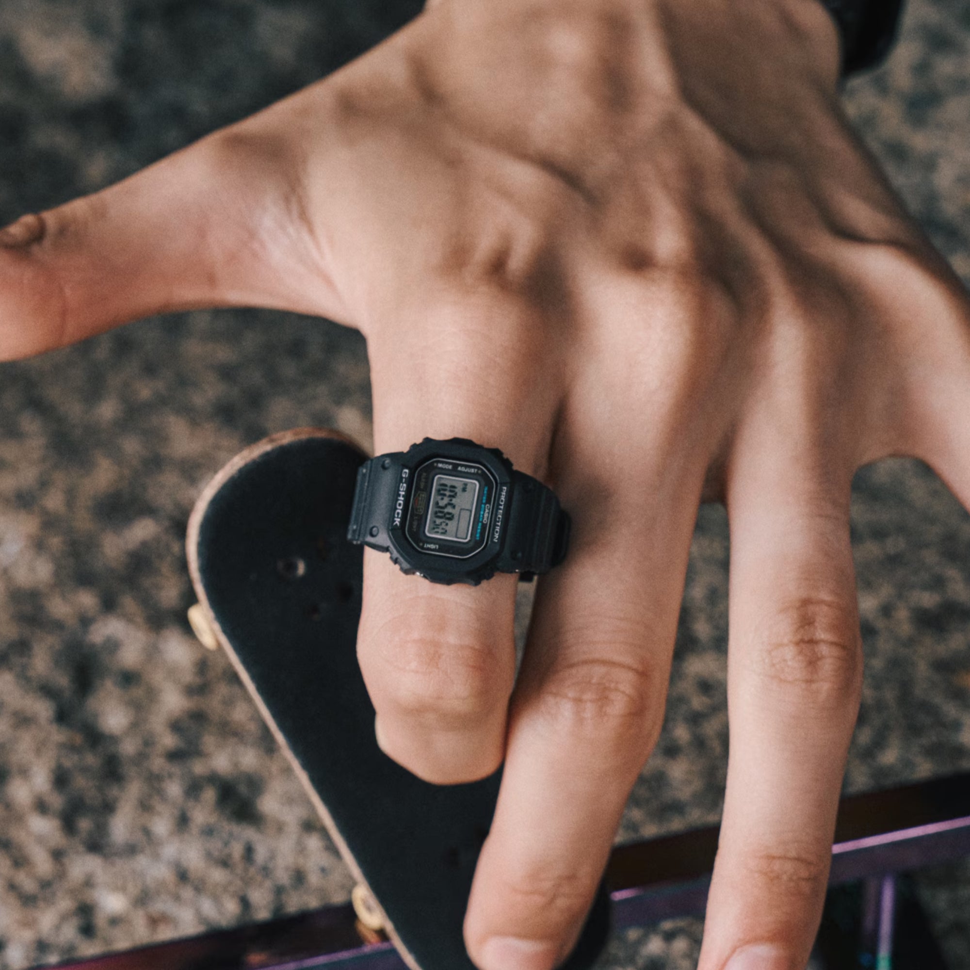 Ring watches can be exposed to a lot of hardship as you work and move throughout your day: bumps, scratches, knocks, hits, and handwashing are constant threats. To counter these and other daily obstacles, shock resistance is at the forefront of G-SHOCK Nano watch ring design, and scratch-resistant mineral glass protects the digital LCD. A G-SHOCK wouldn't be a G-SHOCK without superb water resistance. The DWN5600-1 and all G-SHOCK Nano ring watches are submersible in water up to 200 meters (wr 20 bar), an impressive feat for a finger watch. G-SHOCK set out over 40 years ago to build an indestructible watch and continues that legacy in the G-SHOCK Nano.