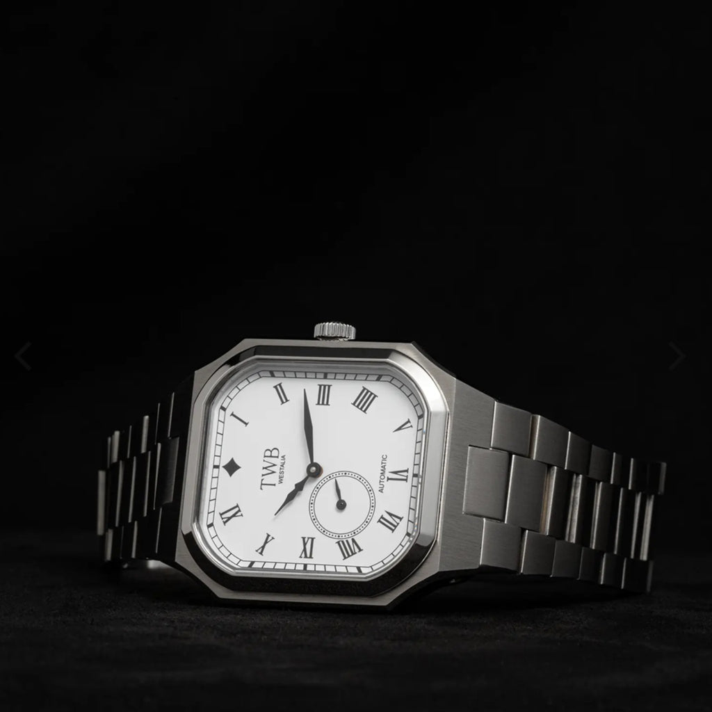 The Westalia White Enamel Stainless Steel is a distinguished debut in TWB’s stainless steel lineup—merging refined heritage with contemporary precision. Crafted from solid 316L stainless steel and finished with a satin-brushed case, this first-edition model embodies quiet strength and timeless appeal.