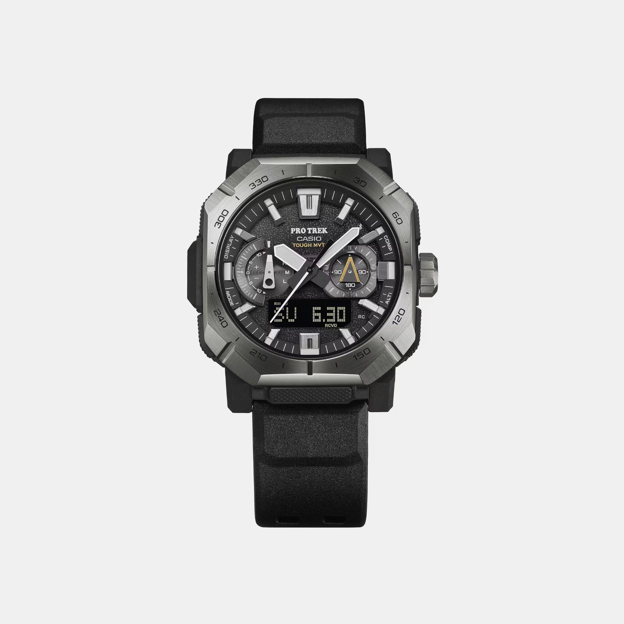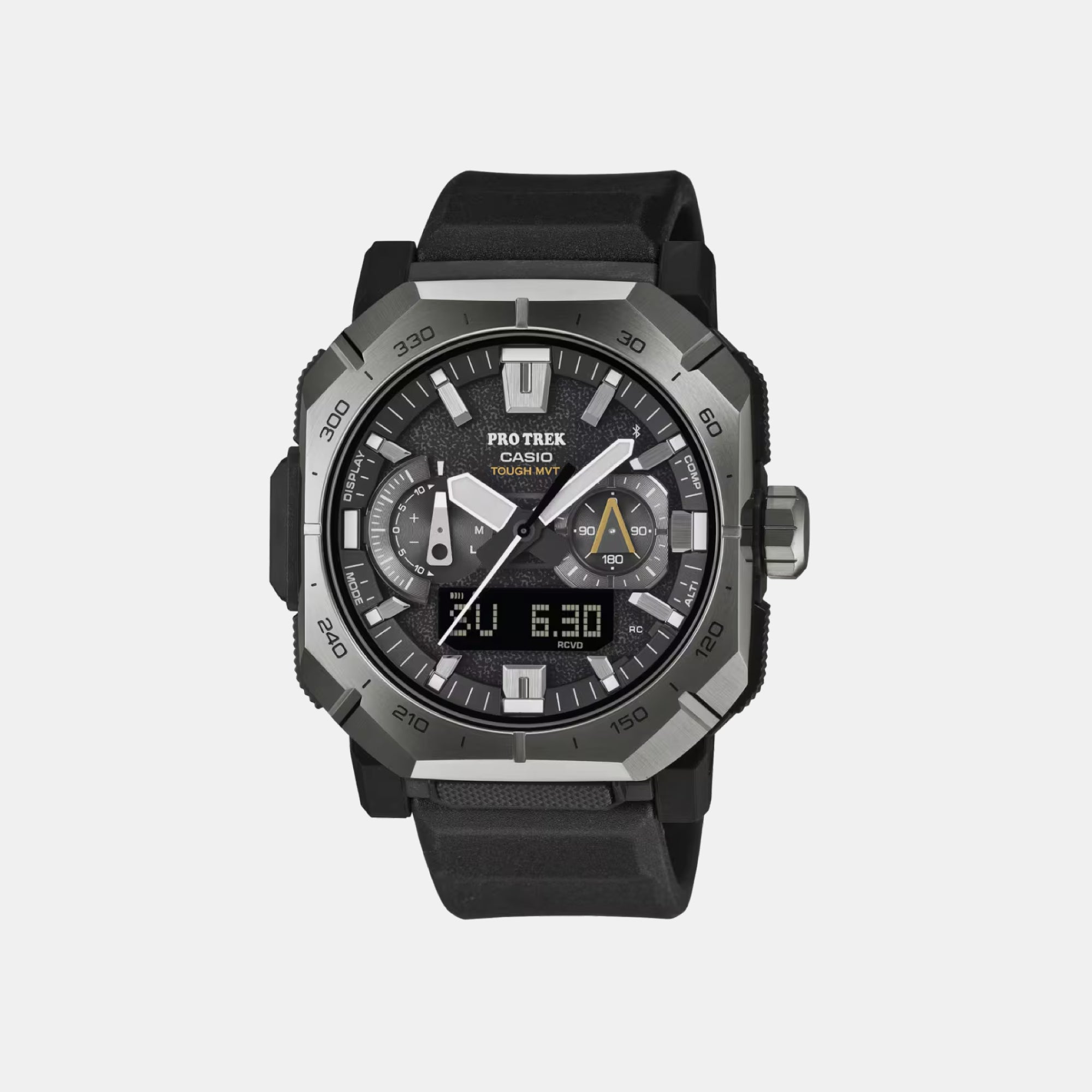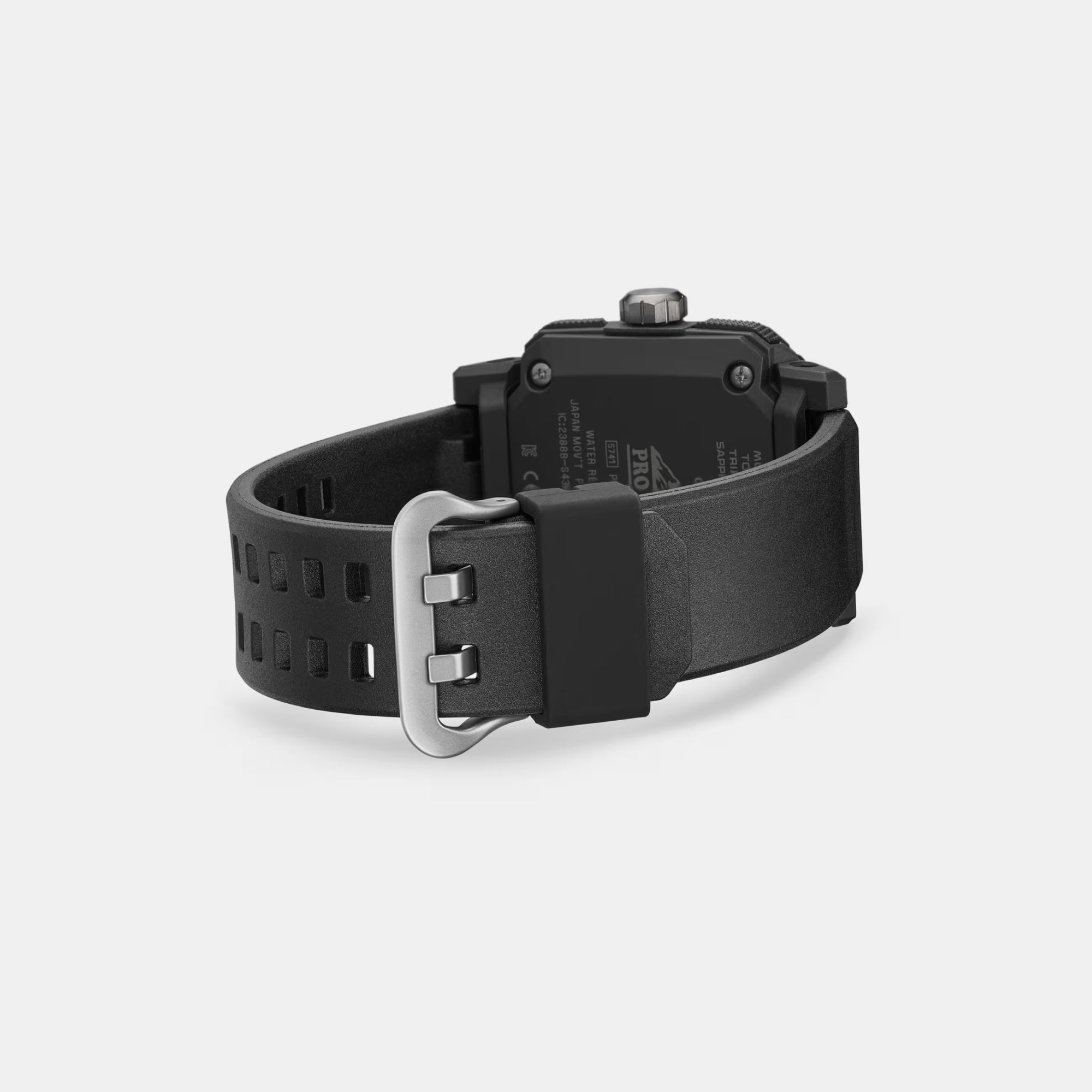 The watch is made with recyclable and environmentally considerate materials — the case with flame-resistant bio-based resin and the band with lightweight, high-strength cellulose nanofiber (CNF) — in keeping with your love of nature. Also with 100-meter water resistance, the PRO TREK PRW-B1000 is ready to take on anything from weekend camping to demanding mountain climbs.