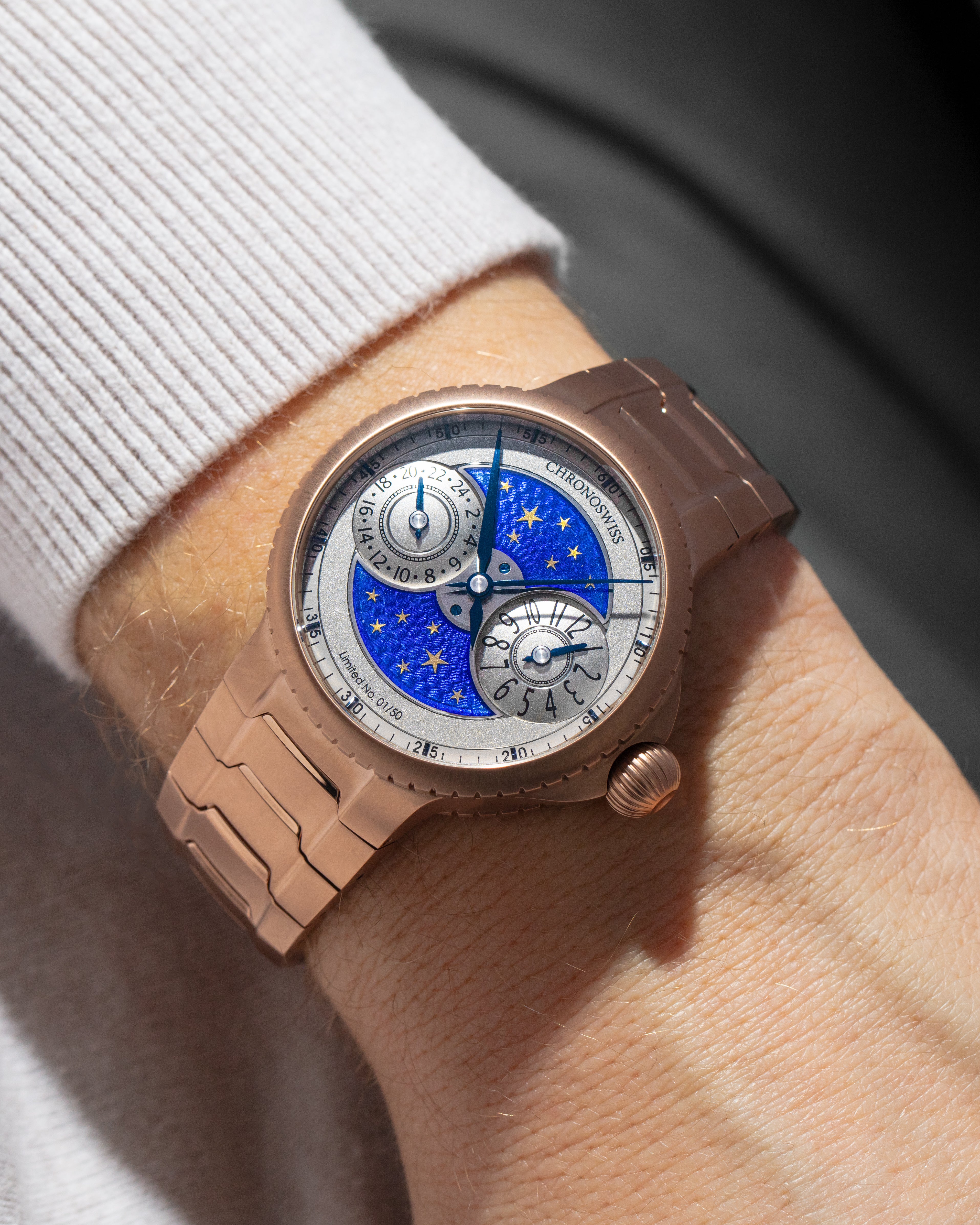 The PULSE GMT Enamel Sky Gold takes Chronoswiss’ most forward-looking platform and pairs it with one of the oldest, most unforgiving crafts in watchmaking. Modern architecture on the outside. Fire, patience, and centuries-old technique at the core.